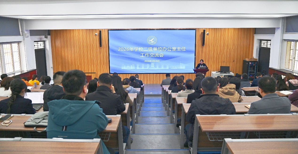 为进一步提升二级单位“高质量、高水平、高标准”工作质效,持续推进落实“习惯过紧日子”工作要求,不断强化二级单位办公室主任统筹协调、参谋助手、督促检查、服务保障等综合能力,3月26日下午,学校召开2026年二级单位办公室主任工作交流会。党政办公室...